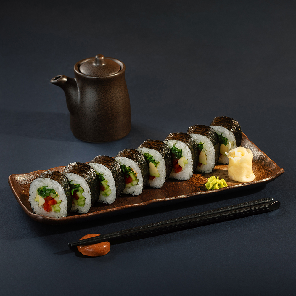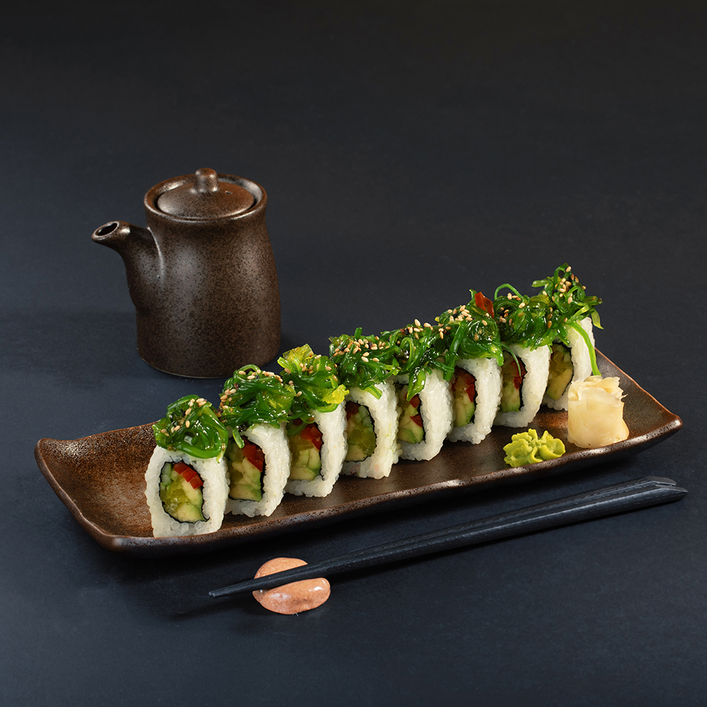 8 ნაჭერი – გომა ვაკამე, ავოკადო, პაპრიკა, კიტრი და სეზამი.