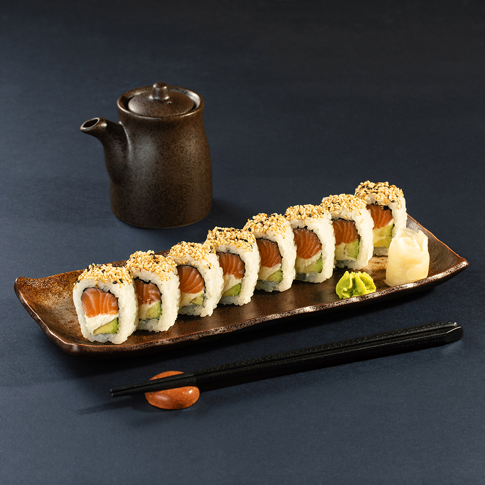 8 ნაჭერი – ორაგული, ნაღების ყველი, ავოკადო და სეზამი.