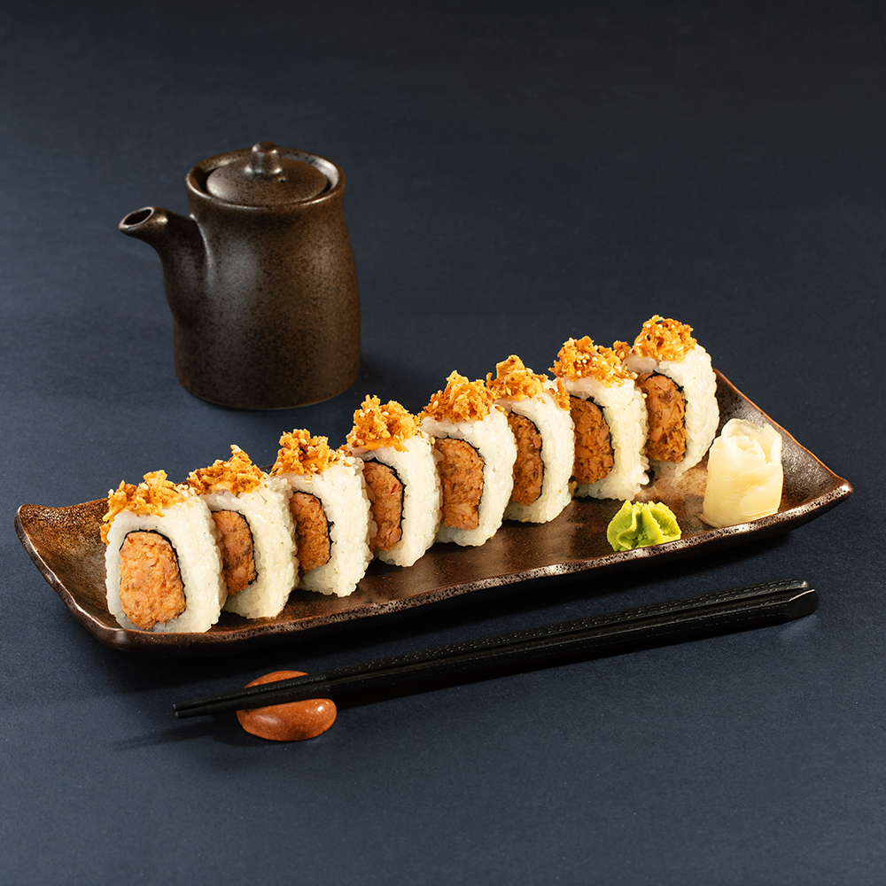 8 ნაჭერი – ორაგული, ტობიკო, ნაღების ყველი, საფირმო სოუსი და ხახვი.