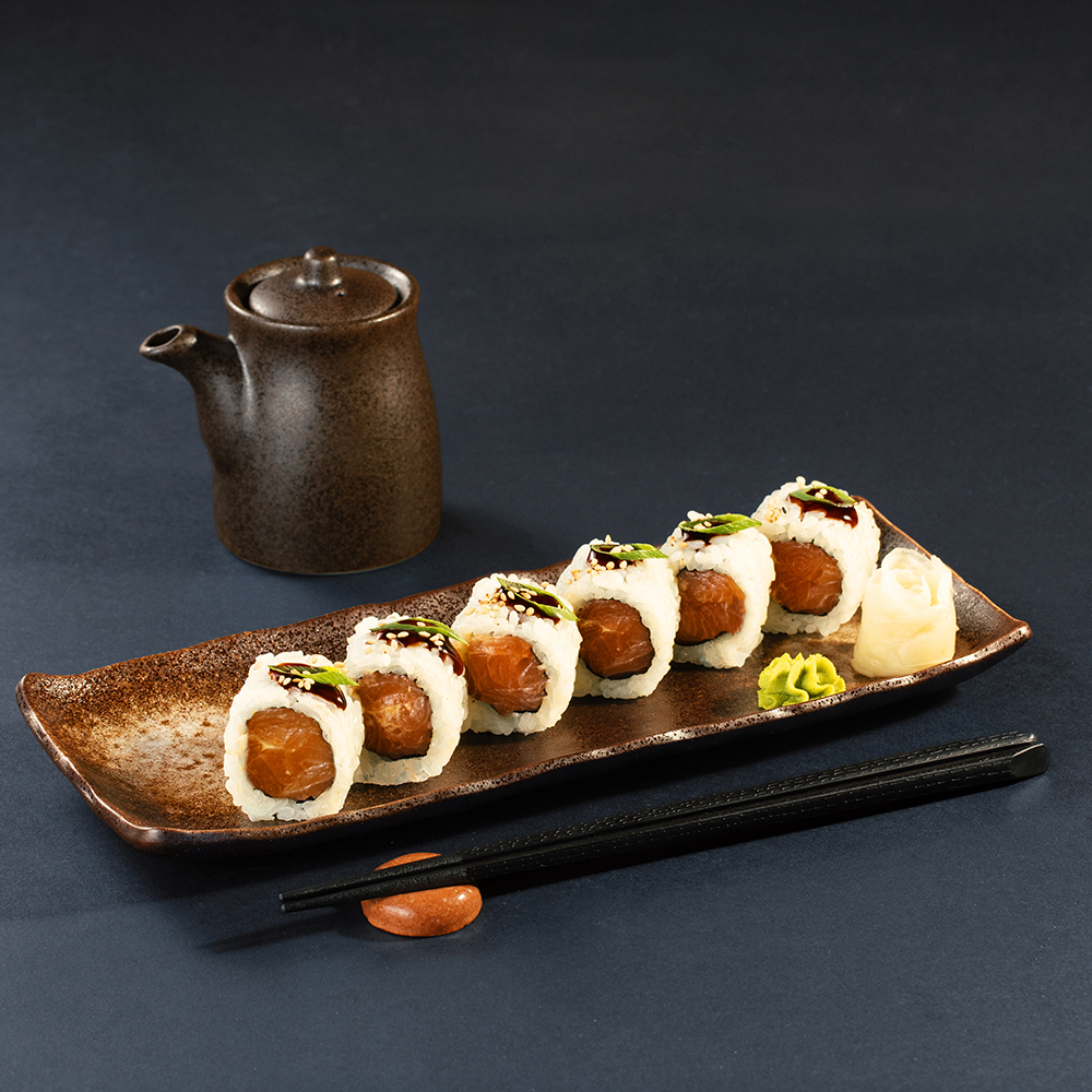 6 ნაჭერი – ორაგული, საფირმო სოუსი, უნაგის სოუსი და ხახვი.