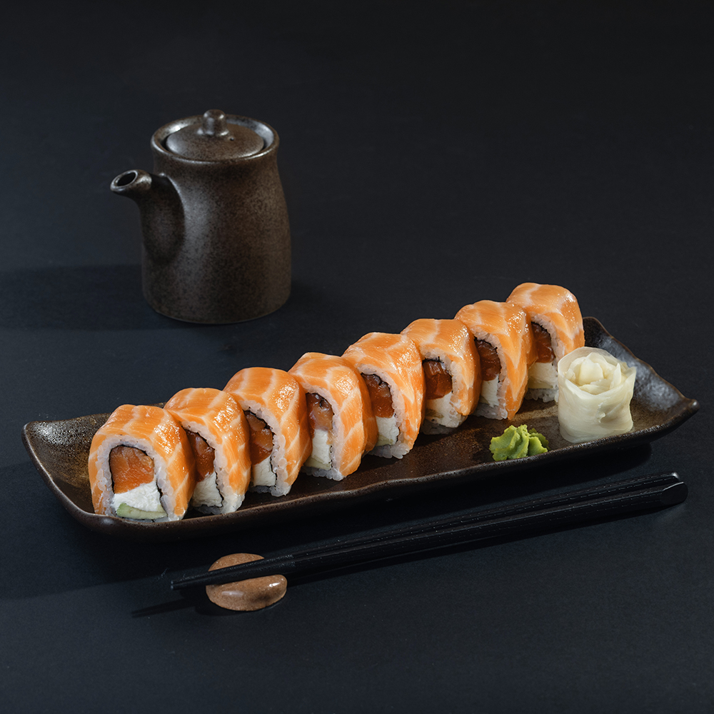 8 шт. — с лососем, сливочным сыром и авокадо.
